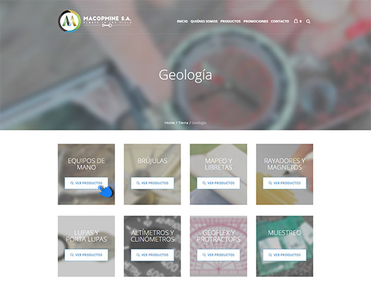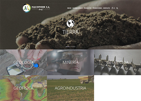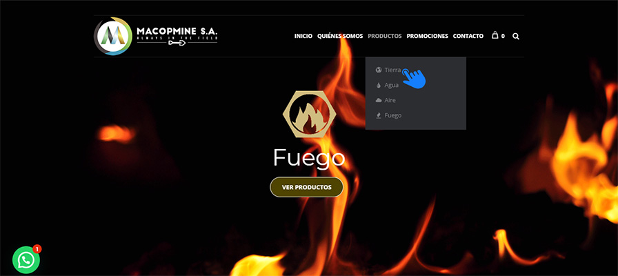 - En el menú principal, escoja en PRODUCTOS la categoría que desee: TIERRA, AGUA, AIRE, FUEGO.